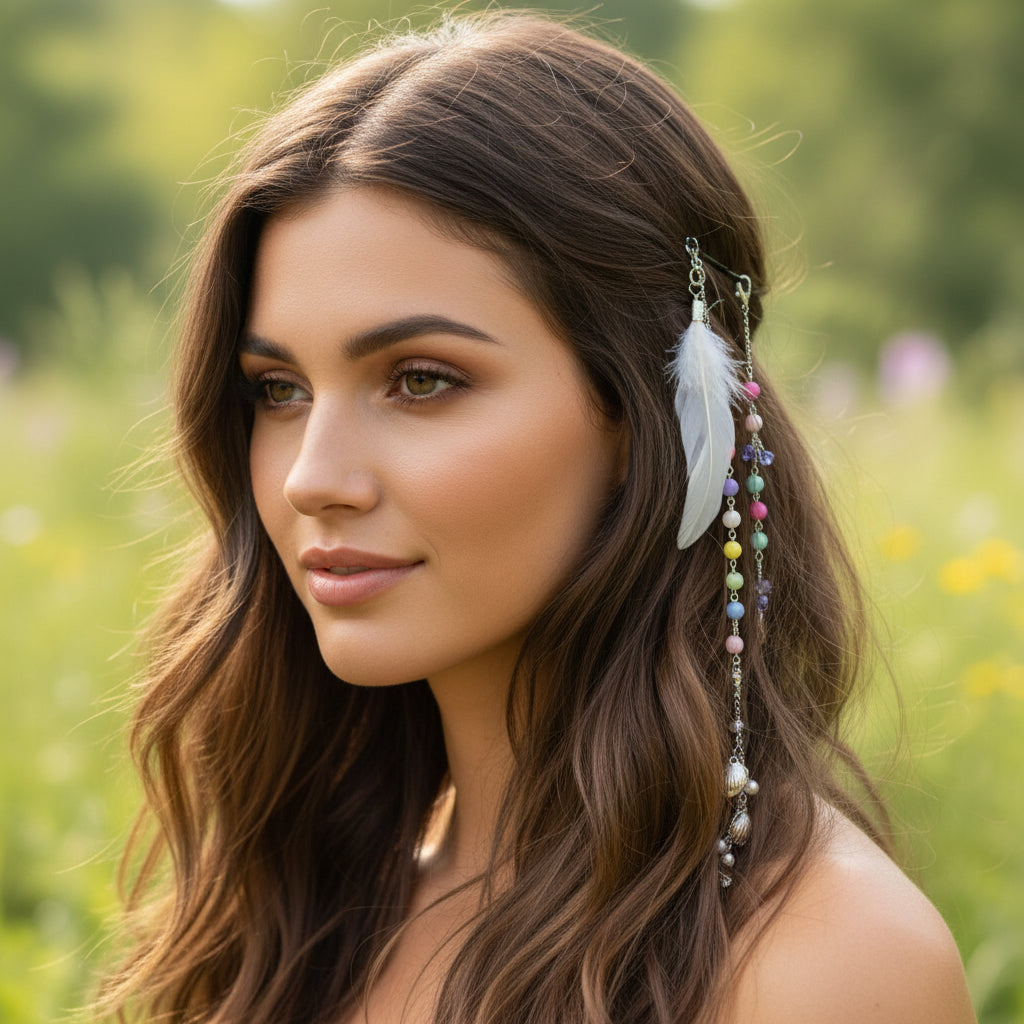 A delicate handmade hairpin featuring multicolor acrylic beads, butterfly and silver-plated seashell charms, and faux pearl accents. The double-strand design includes one short colorful strand and one longer pastel strand with ocean-inspired details. Light, cute, and perfect for everyday wear, photos, parties, or mermaid/fairycore outfits.