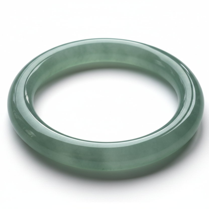 This bangle is crafted from dark blue agate, featuring a smooth, glossy finish with a naturally soft, smoky translucency. The deep blue tone shifts gently under the light, creating a calming and elegant visual effect. Its rounded traditional silhouette sits comfortably on the wrist and offers a cool, pleasant touch when worn.